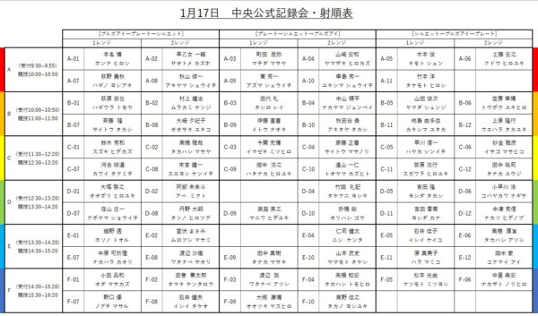 1月17日(土)開催の中央公式記録会の射順を発表いたします。